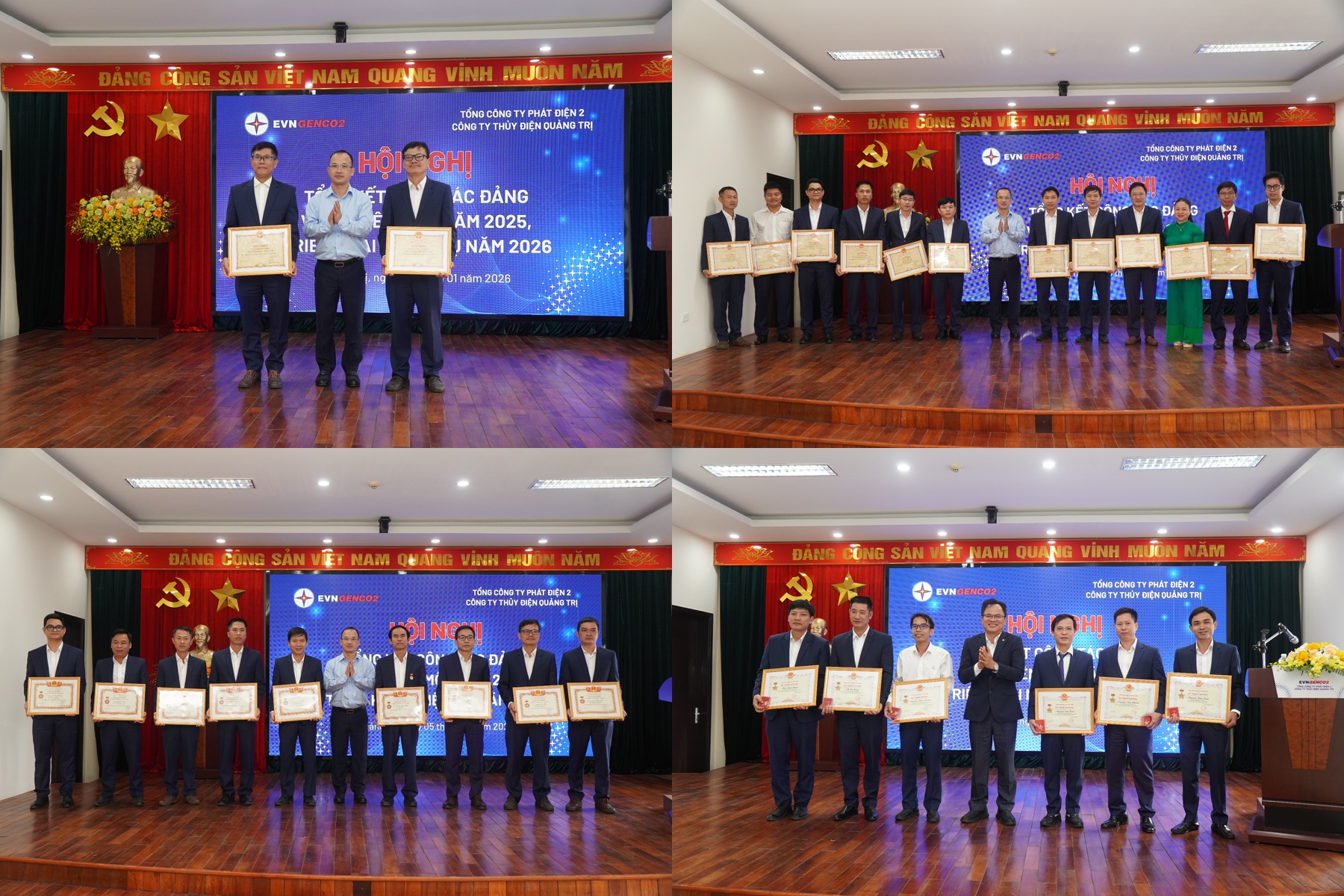 Trong khuôn khổ Hội nghị, Tổng công ty Phát điện 2 và Công ty TĐQT đã biểu dương, khen thưởng các tập thể, cá nhân có thành tích xuất sắc trong công tác Đảng và hoạt động sản xuất - kinh doanh năm 2025, nhằm kịp thời động viên, khích lệ tinh thần thi đua lao động, góp phần xây dựng Công ty ngày càng phát triển bền vững.