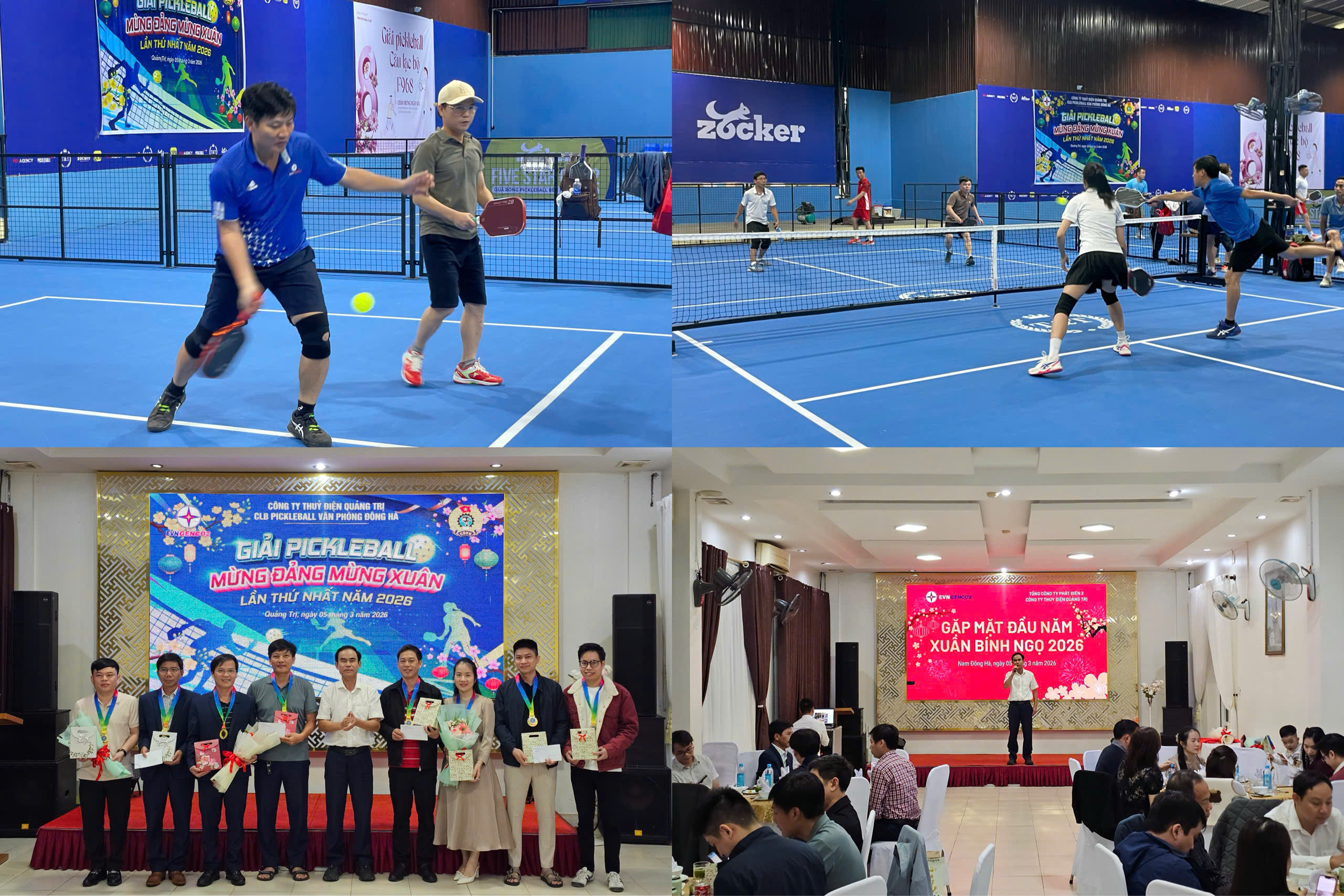 Song song với đó, Câu lạc bộ Pickleball Văn phòng Đông Hà đã tổ chức Giải Pickleball mừng Đảng - mừng Xuân Bính Ngọ 2026 vào ngày 05/3/2026 với sự tham gia của đông đảo vận động viên là CBCNV trong Công ty. Giải đấu được tổ chức với các nội dung đôi nam và đôi nam nữ, tạo nên không khí thi đấu sôi nổi, hào hứng. Sau một ngày tranh tài, Ban Tổ chức đã trao các giải Nhất, Nhì và Ba cho những cặp vận động viên xuất sắc.