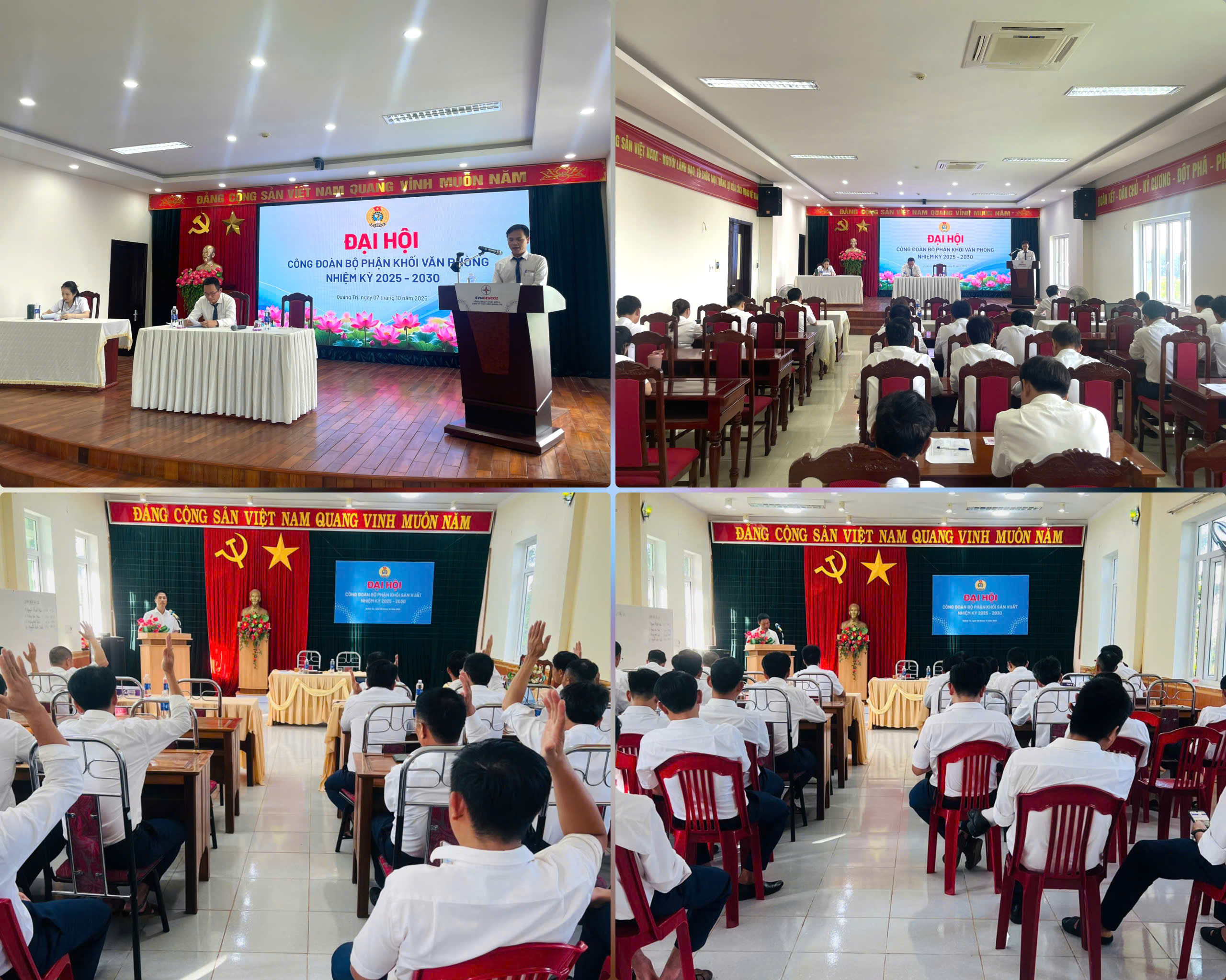 Trong hai ngày 07 và 08/10/2025, tại Văn phòng Đông Hà và Khu quản lý vận hành Khe Sanh đã tổ chức Đại hội Công đoàn bộ phận Khối Văn phòng và Khối Sản xuất nhiệm kỳ 2025 - 2030. Đây là đợt sinh hoạt chính trị sâu rộng của đội ngũ đoàn viên, người lao động, đánh dấu bước phát triển mới trong công tác công đoàn của Công ty.