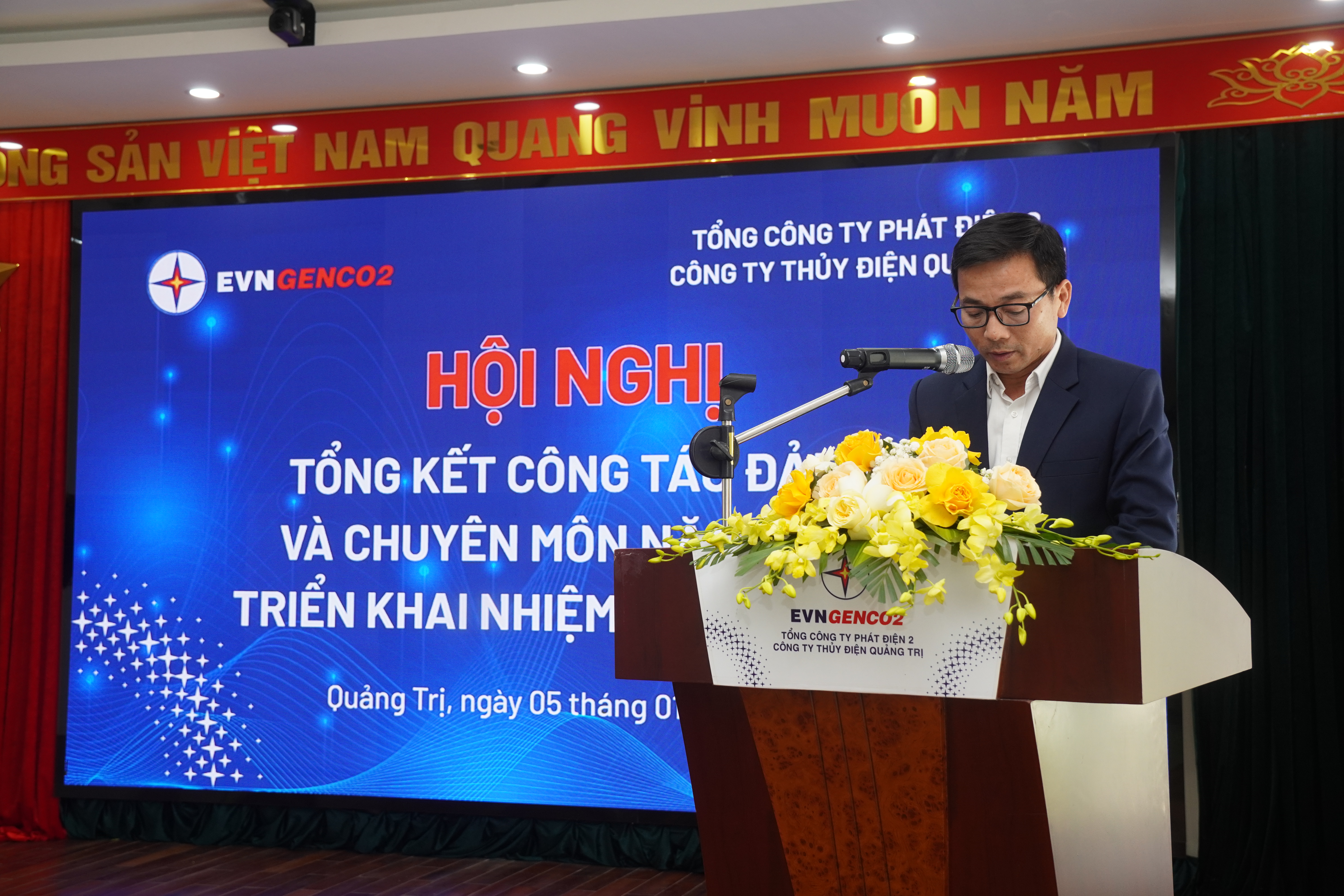 Ngày 05/01/2026, Công ty Thủy điện Quảng Trị (TĐQT) tổ chức Hội nghị tổng kết công tác Đảng và chuyên môn năm 2025, triển khai nhiệm vụ năm 2026. Hội nghị là dịp đánh giá toàn diện kết quả thực hiện nhiệm vụ trong năm 2025, đồng thời xác định phương hướng, nhiệm vụ trọng tâm cho năm 2026.